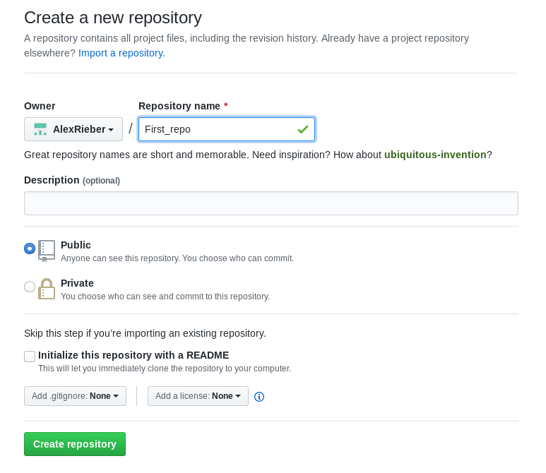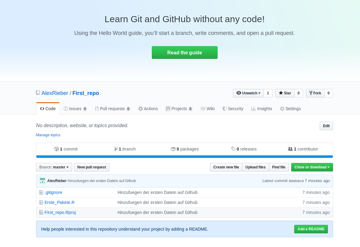 Bei Git tragen Sie ihr First_Repo ein (zur Erinnerung, meins war: https://github.com/AlexRieber/First_repo.git)