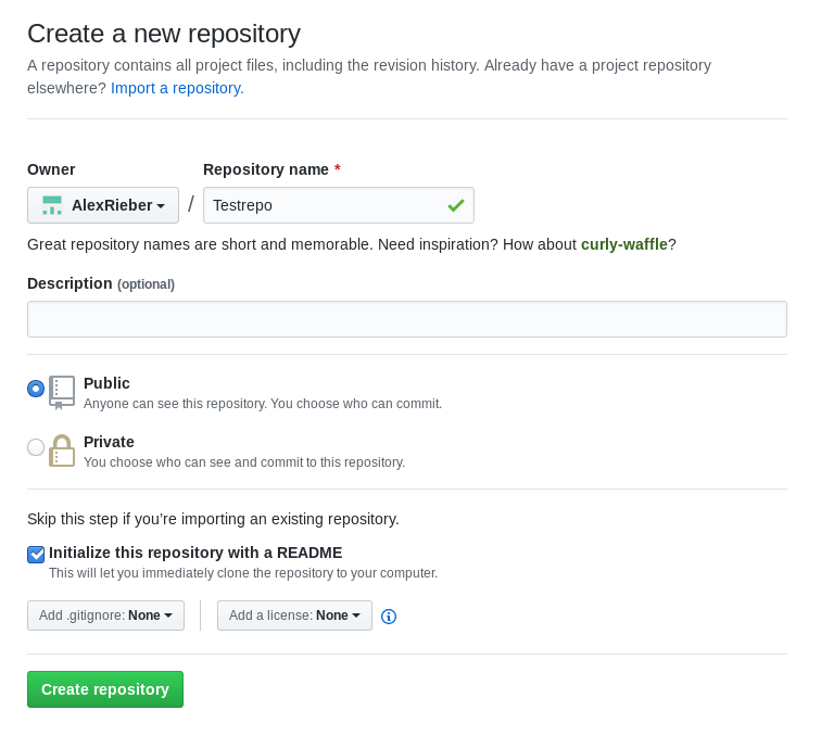 Erstellen Sie ein neues Repositorium auf Github!